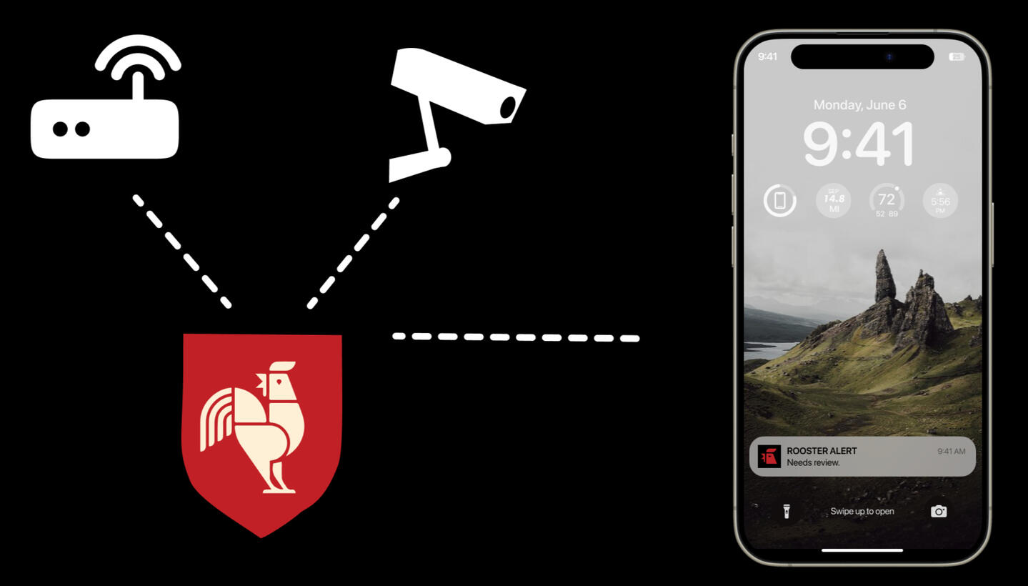 All that is needed is a Wifi Password and Camera log in and Rooster is set up in minutes. Notifying you of anyone in our general system to look out for.